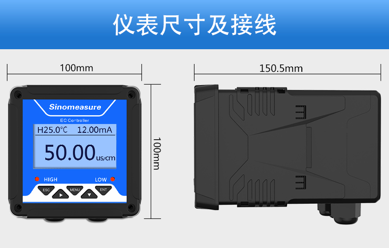 联测仪表SIN-TDS210-C工业电导率仪表,广泛应用于火电、化工化肥、冶金、环保、制药、生 化、食品和自来水等行业。控制器主要对溶液中的电导率/总溶解固体/ 电阻率和温度进行连续监测。