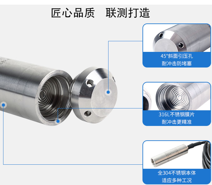 SIN-P260投入式液位变送器由高性能扩散硅压阻式压力传感器作为测量元件,把与液位深度成正比的液体静压力准确测量出来。